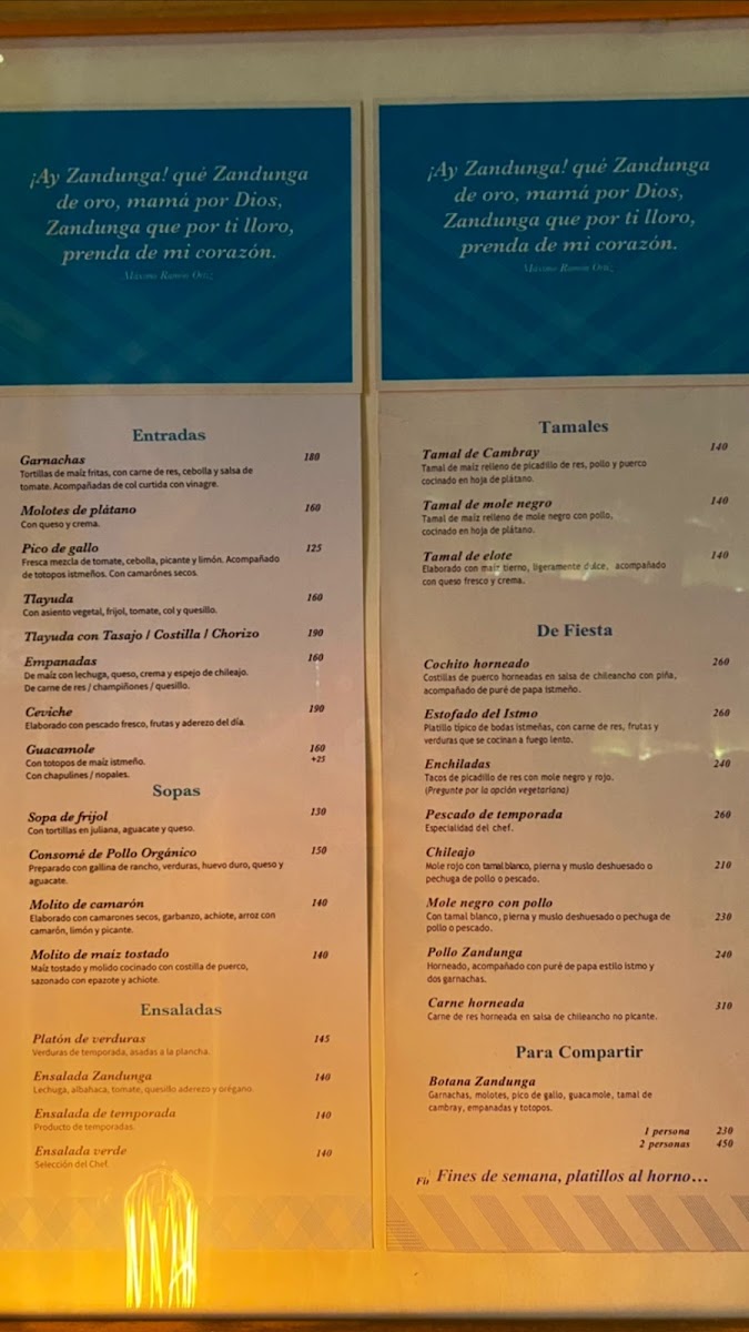 Zandunga Sabor Istmeno Menu (2025 Update)